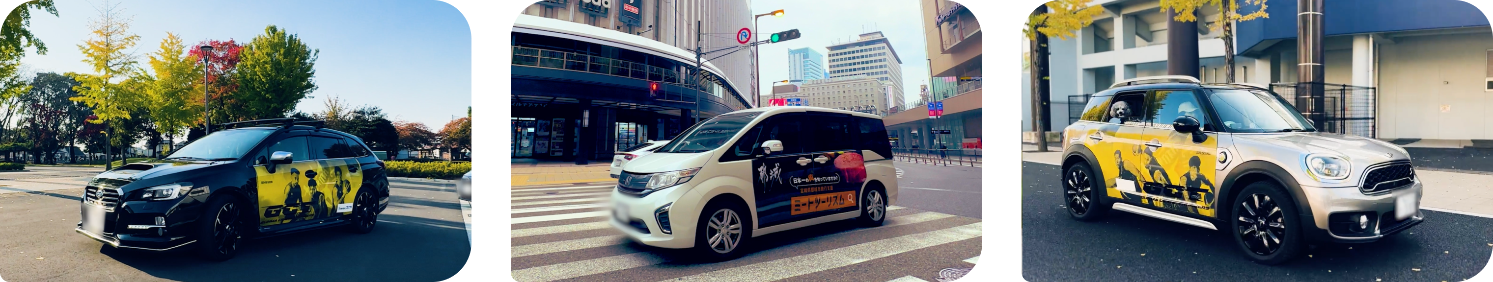 大型イベントなどで複数の車両を使用し、広告を効率的に拡散。広範囲にわたるプロモーションで強力なPR効果を発揮します。